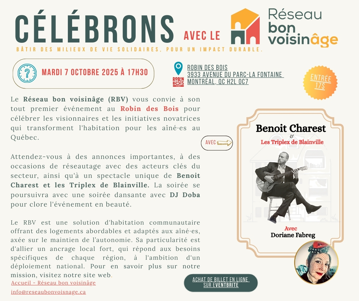 Nous avons le plaisir de vous inviter à notre tout premier événement, « Célébrons avec le Réseau bon voisinâge ».